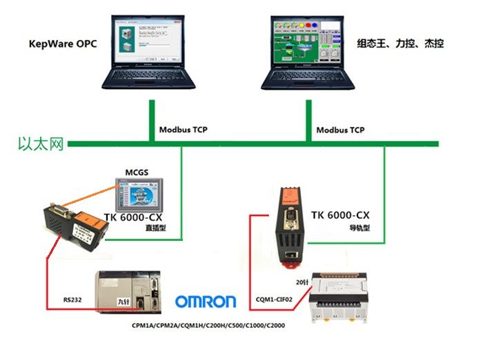 以太网监控、数据采集(组态王、力控、杰控、KepWare OPC)、设备联网。